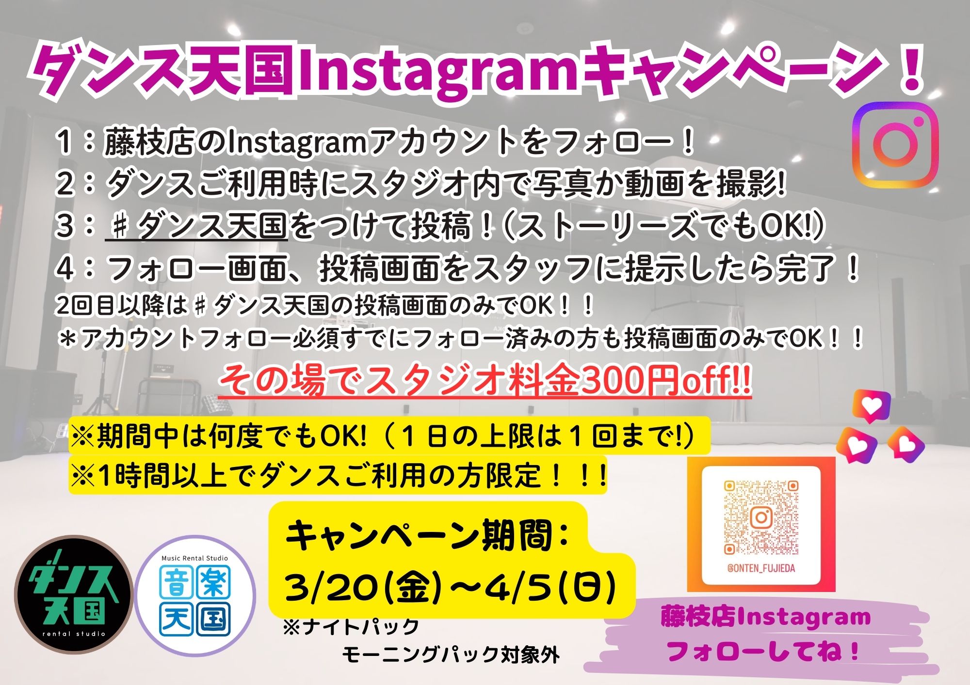 ※1時間以上のスタジオご利用が対象となります。